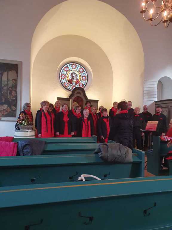Der Schwansener Gesangverein und der Projektchor Gundelsby-Massholm erwarteten uns um 18:00 Uhr zu einem gemeinsamen Auftritt in der Christuskirche Gundelsby, zu dem uns der hiesige Pastor C. Birkner einlud.